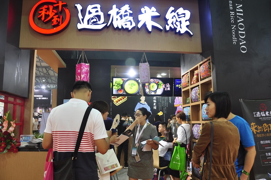 展會現場來訪觀眾,關注【十秒到過橋米線】官方加盟微信,即可現場免費試吃。