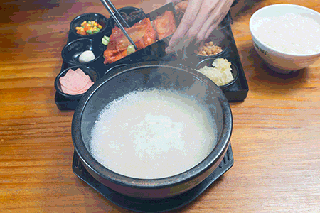 剛熬好的湯底,倒進砂鍋不斷地沸騰翻滾